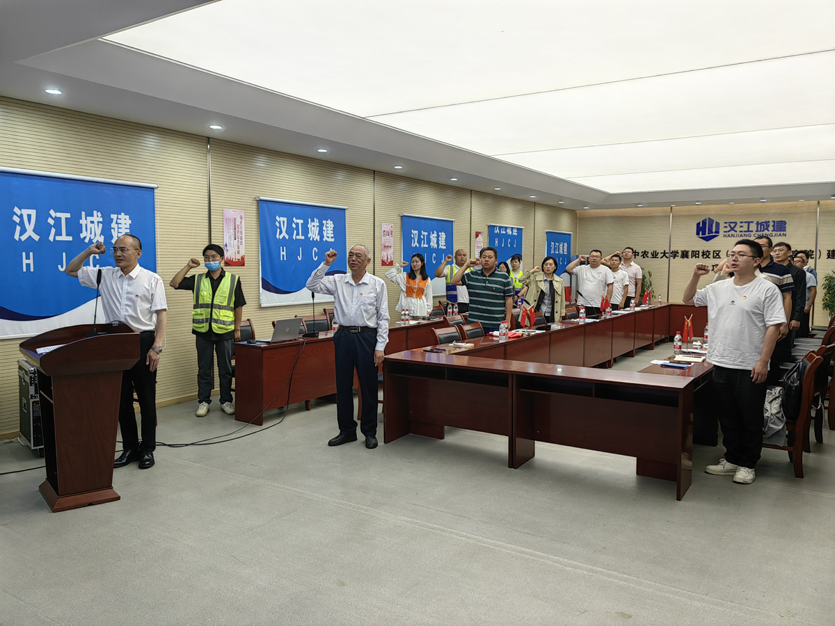 為進一步學習和發(fā)揚“鐵軍精神”,不斷加強基層黨組織的凝聚力和戰(zhàn)斗力,打造精品工程和廉潔工程,5月26日下午,漢江城建建安分公司黨支部聯(lián)合東津新區(qū)城鄉(xiāng)建設局、智投公司、中韜華勝監(jiān)理公司、漢江城建第二分公司四個支部在華中農業(yè)大學襄陽校區(qū)(現(xiàn)代農業(yè)研究院)建設項目部共同舉辦“黨建進工地 強化責任擔當”主題黨日活動,共50余人參會。