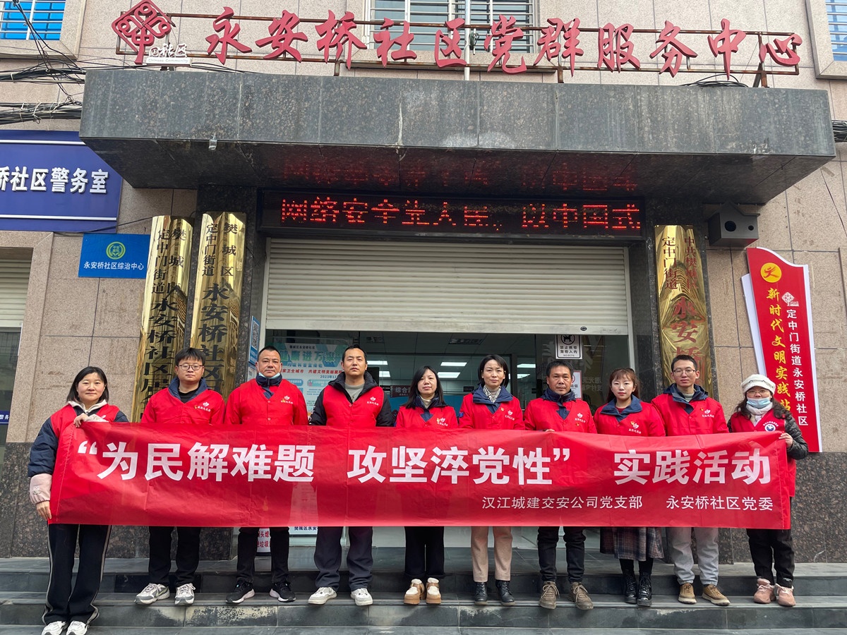 為深入開(kāi)展學(xué)習(xí)貫徹習(xí)近平新時(shí)代中國(guó)特色社會(huì)主義思想主題教育,扎實(shí)開(kāi)展“下基層、察民情、解民憂、暖民心”系列活動(dòng),進(jìn)一步發(fā)揮基層黨組織黨員先鋒模范作用,12月27日,漢江城建交安公司黨支部聯(lián)合永安橋社區(qū)黨委,共同開(kāi)展“為民解難題 攻堅(jiān)淬黨性”實(shí)踐活動(dòng)。