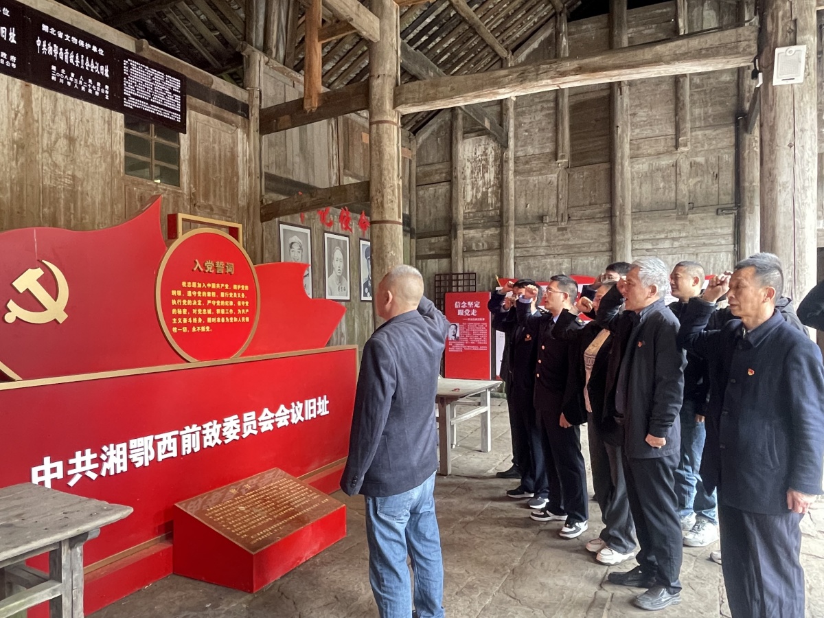 活動(dòng)中,在講解員的帶領(lǐng)下,雙方黨員干部共同參觀了中共湘鄂西前敵委員會(huì)舊址的5個(gè)展廳,通過聆聽紅色故事、緬懷革命先烈、尋覓紅色足跡,汲取前進(jìn)力量。在舊址前,長(zhǎng)干村村委會(huì)主任帶領(lǐng)全體黨員重溫入黨誓詞,追憶入黨初心,提升黨性修養(yǎng)。