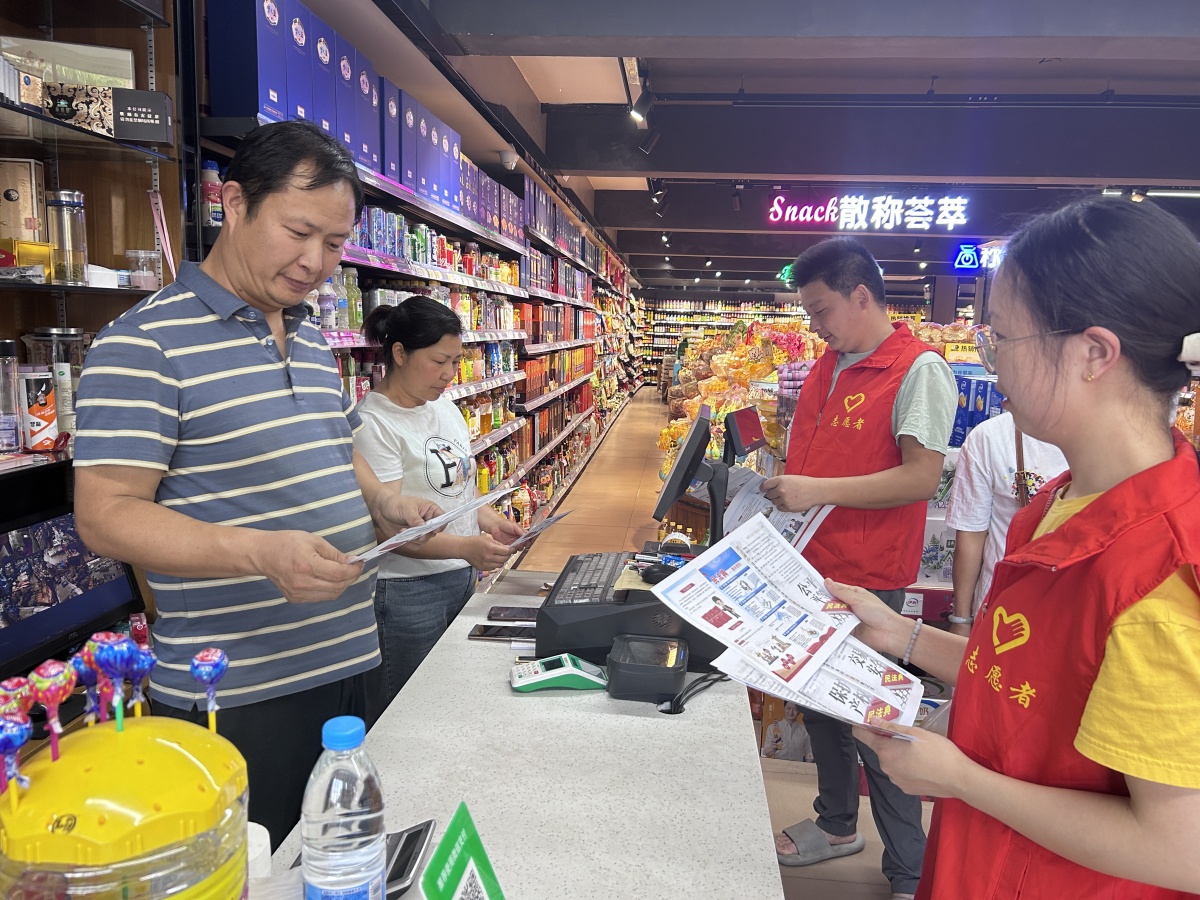 二是組織開展民法典進(jìn)商戶、進(jìn)超市系列活動(dòng);顒(dòng)現(xiàn)場(chǎng),志愿者通過發(fā)放宣傳手冊(cè)、現(xiàn)場(chǎng)講解等方式,重點(diǎn)圍繞民法典和優(yōu)化營(yíng)商環(huán)境條例等進(jìn)行普法宣傳,引導(dǎo)市場(chǎng)主體依法經(jīng)營(yíng),消費(fèi)者合理消費(fèi),切實(shí)“典”亮法治化營(yíng)商環(huán)境。同時(shí),通過現(xiàn)場(chǎng)咨詢的方式與過往群眾互動(dòng)溝通,積極引導(dǎo)群眾養(yǎng)成自覺守法、遇事找法、化解矛盾用法、解決問題靠法的良好思維習(xí)慣,切實(shí)增強(qiáng)全民法治意識(shí)。
