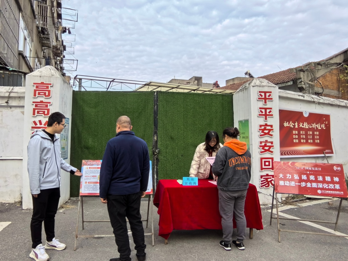 活動期間,交安公司普法宣傳志愿者在橋北東路辦公廠區(qū)門口設置“憲法宣傳周”宣講臺,通過張貼憲法宣傳海報、發(fā)放憲法宣傳單等方式,用通俗易懂的語言為附近居民講解憲法相關知識,通過圖文并茂的講解模式,有效增強居民的守法觀念和憲法意識,使法治觀念入腦入心,營造濃厚的學法、知法、懂法、守法、普法氛圍。