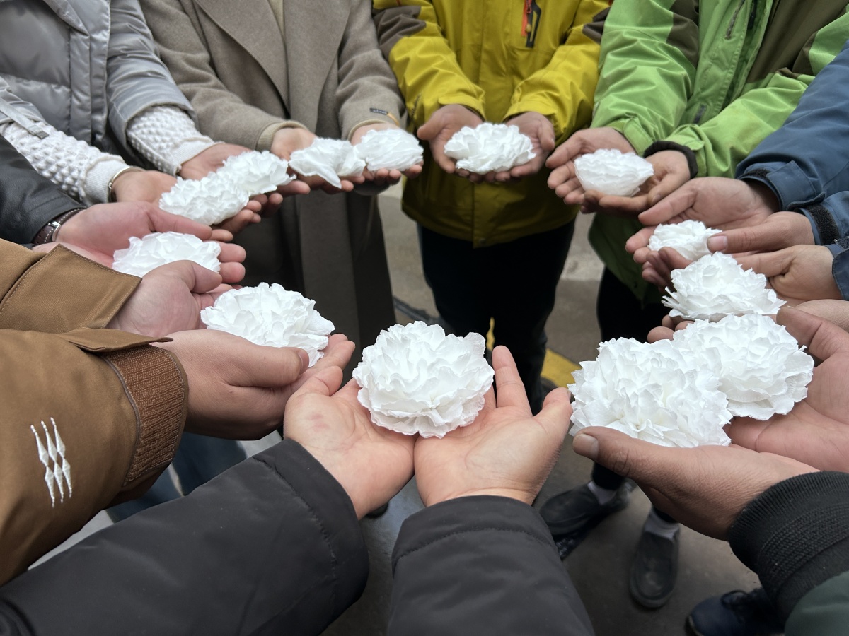 活動伊始,黨員代表黃冬麗帶領(lǐng)在場的黨員重溫入黨誓詞,全體成員為南京大屠殺死難者默哀一分鐘;緊接著通過播放視頻和PPT展示等方式,向大家普及了國家公祭日的歷史背景與深遠意義,帶領(lǐng)大家進一步了解歷史。看著一段段視頻、一張張照片,在場的所有人均感受到了戰(zhàn)爭的殘酷與和平的珍貴。隨后,大家認真學(xué)習(xí)小白花的制作技巧,細致地折疊、粘貼,一朵朵精致的小白花在他們的巧手中逐漸成形。參加活動的一名員工說:“我們把自己的心意融入到一朵朵小白花里面,以此表達對南京大屠殺死難者深深的哀思。”