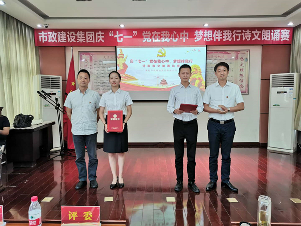為隆重慶祝中國共產(chǎn)黨99周年華誕,回顧我黨光輝歷程,牢記黨的宗旨使命,激勵(lì)奮進(jìn)步伐,激發(fā)干勁熱情,以實(shí)際行動(dòng)向黨的生日獻(xiàn)禮,市政集團(tuán)7月1日舉辦了“黨在我心中、夢(mèng)想伴我行”慶 “七一”詩歌散文朗誦比賽活動(dòng)。