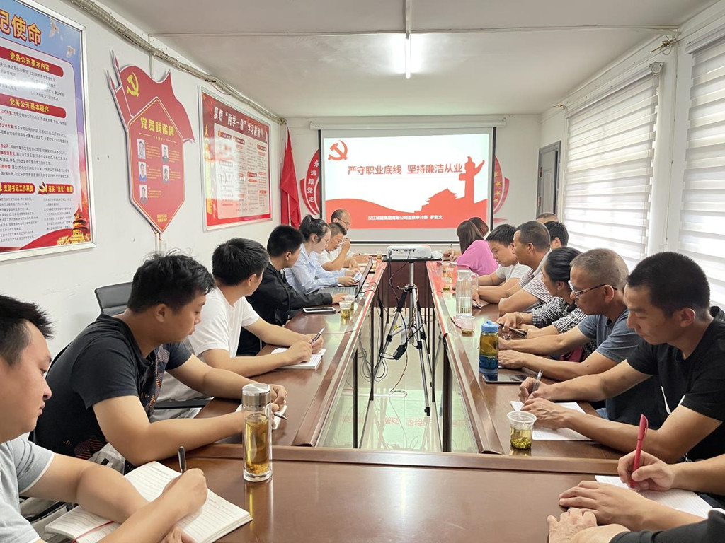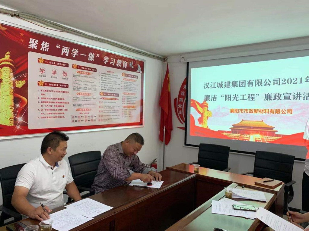 7月6日上午,漢江城建監(jiān)察審計部到襄陽市政新材料有限公司開展廉政宣講活動,襄陽市政新材料有限公司全體黨員、管理人員及鄂西北疫情防控基地項目人員共同參加了本次廉政宣講活動。