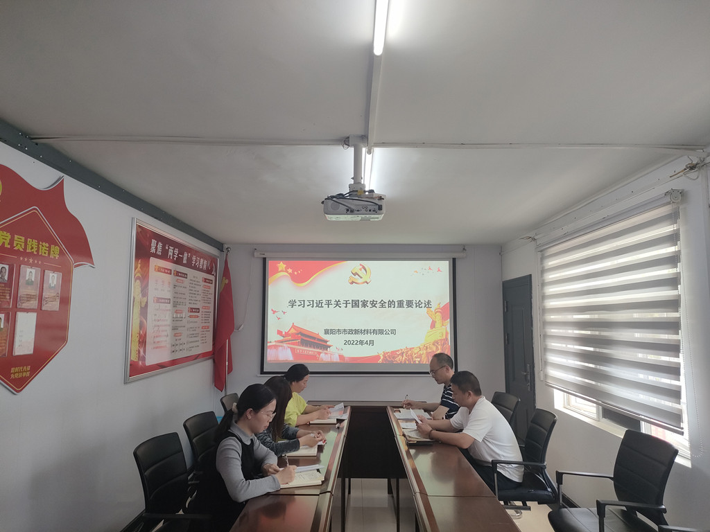 在全民國家安全教育日來臨之際,為加強宣傳教育和提升公司安全文化建設(shè),切實增強職工國家安全意識,促進(jìn)公司安全發(fā)展,4月11日下午,新材料公司結(jié)合“兩學(xué)一做”主題黨日活動,率先組織全體黨員干部開展了有關(guān)國家安全的宣傳教育活動。