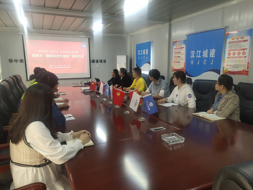 各項(xiàng)目部管理人員在會(huì)議室觀看宣傳教育視頻、學(xué)習(xí)保密知識(shí),并掃碼進(jìn)行知識(shí)競(jìng)賽答題。在大門處設(shè)置國(guó)家安全知識(shí)咨詢臺(tái)、發(fā)放安全知識(shí)宣傳手冊(cè);并在門衛(wèi)室布置了宣傳角,讓過(guò)往的工人都能自主取閱。隨后,他們前往辦公區(qū)、工人生活區(qū)張貼國(guó)家安全宣傳海報(bào),向堅(jiān)守在崗位上的同事、來(lái)往的工人進(jìn)行宣傳教育。