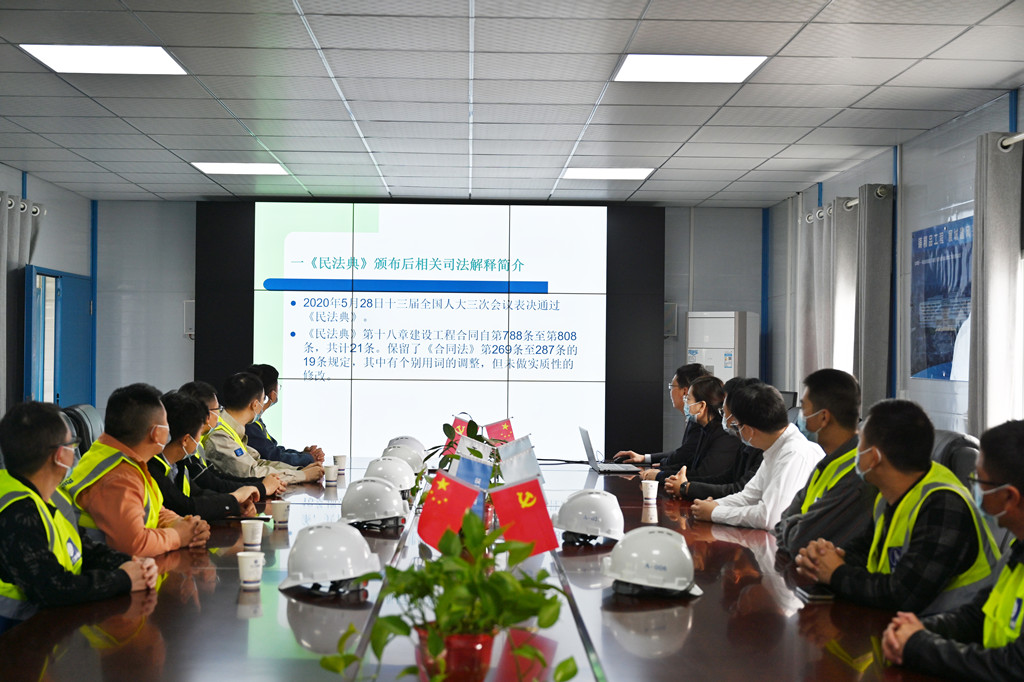 活動(dòng)現(xiàn)場,漢江城建通過張貼展板、橫幅、發(fā)放宣傳資料、現(xiàn)場講解等方式,引導(dǎo)公司員工樹立法律意識(shí)。在大力宣傳《民法典》等法律法規(guī)的同時(shí),結(jié)合公司經(jīng)營需要,特邀公司法律顧問何群濤律師,從民法典對(duì)企業(yè)發(fā)展的法律保護(hù)、對(duì)企業(yè)管理的影響、對(duì)建設(shè)工程合同法律風(fēng)險(xiǎn)防范等方面進(jìn)行法律宣講,多角度闡釋《民法典》,并引用了建設(shè)工程施工方面的實(shí)際案例,深入淺出地進(jìn)行了針對(duì)性講解,使大家充分認(rèn)識(shí)到了《民法典》的重要性。