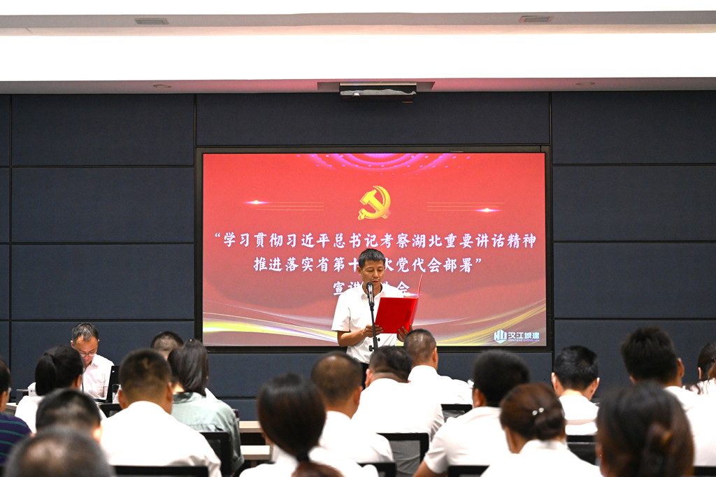 8月11日,漢江城建舉行“學習貫徹習近平總書記考察湖北重要講話精神 推進落實省第十二次黨代會部署”專題宣講報告會。邀請市委宣講團成員、湖北文理學院黨委副書記、副校長、宣傳部長張樊教授作宣講報告。參加此次會議的有漢江城建集團在家領導、分(子)公司中層正職干部及機關全體黨員約50余人。集團黨委副書記、董事姚忠主持會議。